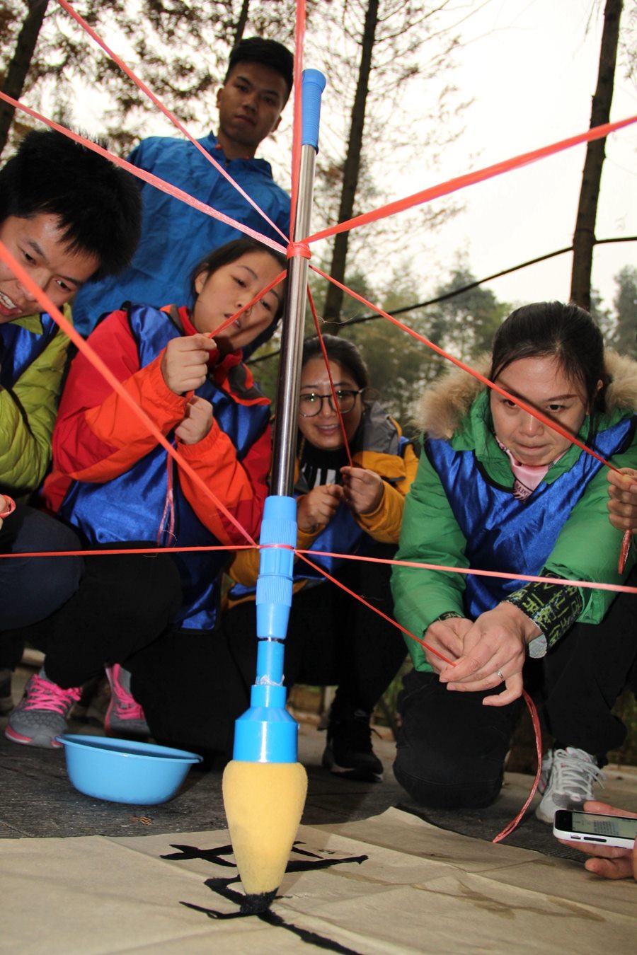 “神笔马良”让大家深刻体会到团队协作的重要性,每一个笔画都不能有力量的偏颇,否则就无法完成任务。