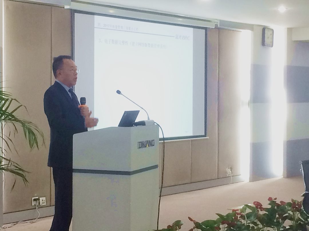 生产制造中心及各子公司质量管理负责人分别对2016年质量管理工作进行总结,并对2017年工作做了部署规划,质量管理领导小组执行组长张爱军先生对2016年质量管理领导小组工作进行了总结汇报,质量管理领导小组办公室主任刘淑智女士对《外部抽检信息反馈与处理流程》制度做了相关培训,同时,质量管理领导小组蒲太平先生在会上宣布了迪康长江质量负责人宋明万为2017年质量管理领导小组执行组长。