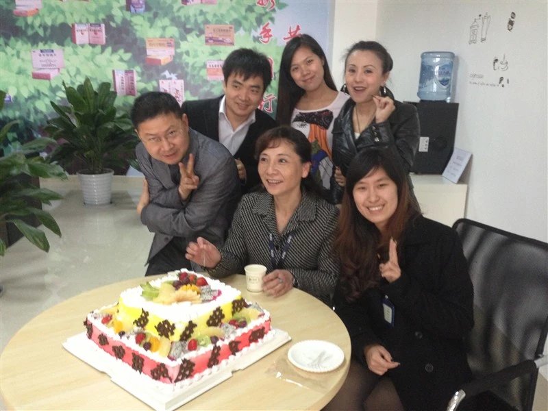 在迪康过集体生日的夏兴国(图左2)